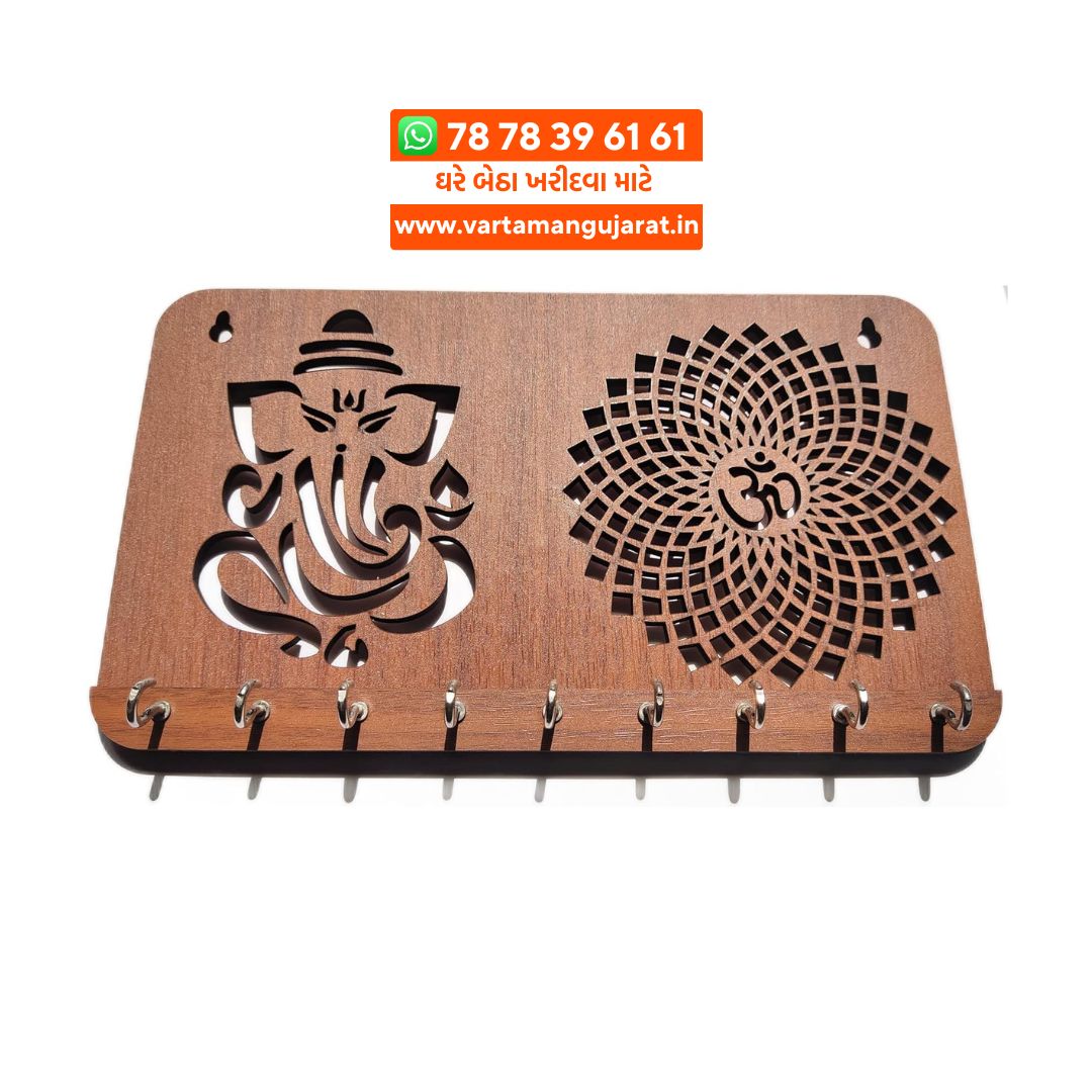 Ganesha Om Chakra Key Holder In Wooden